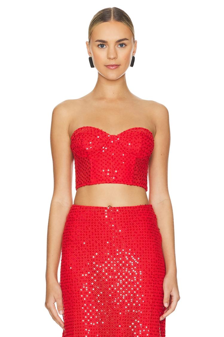 Sequined crochet knit in vibrant red creates an eye-catching cropped corset top with a sweetheart neckline and a fitted silhouette. Featuring boned structure at the bodice and cups, this strapless design includes detachable straps and a corset tie-up closure at the back for adjustable fit. Ideal for spring and summer nights, it shines at cocktail parties, date nights, or stylish evenings out. The cotton-polyester blend offers comfort and subtle sheen, making this top a bold statement piece that blends sexy with trendy chic.