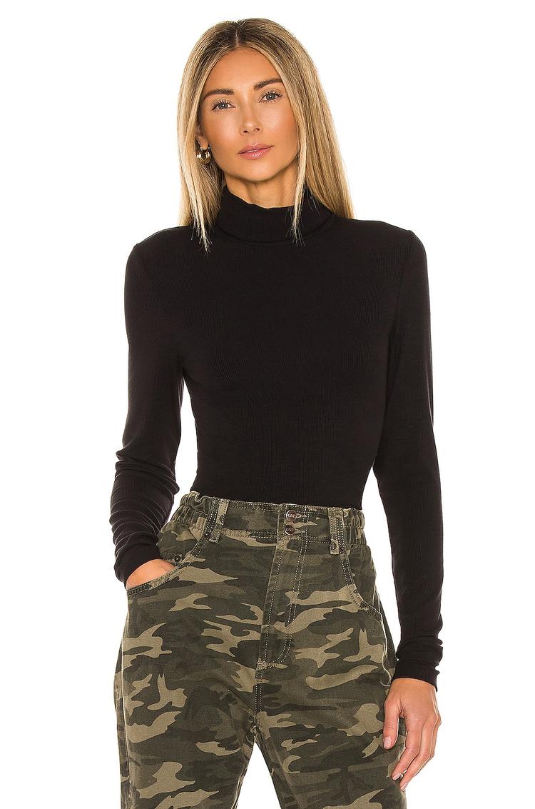 Soft ribbed fabric and a sleek silhouette define this fitted base layer turtleneck, perfect for layering or wearing solo. The foldover neckline adds a classic touch, while long regular sleeves and hip-length hem offer versatile coverage. Crafted from a rayon and spandex blend, it combines comfort and stretch for all-day wear. Ideal for autumn and winter, this minimalist black essential pairs effortlessly with casual, workwear, and business casual outfits, making it a timeless addition to any wardrobe.