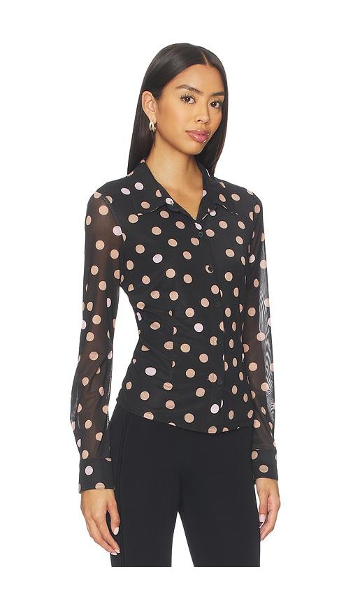 SANCTUARY FITTED MESH BUTTON DOWN TOP IN BLACK.