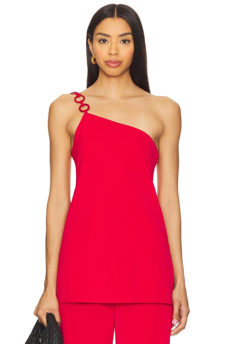 Bright red asymmetric neckline and sleek silhouette define this hip-length tank top, crafted from midweight polyester jersey. The slim fit enhances the modern, minimalist vibe, while the one-shoulder strap with bow details adds a sexy, chic touch. Featuring a hidden side zipper for a smooth finish, it’s perfect for warm-weather occasions like brunch, date nights, and casual outings. This versatile top blends understated elegance with a bold pop of color, making it ideal for elevating your summer wardrobe.