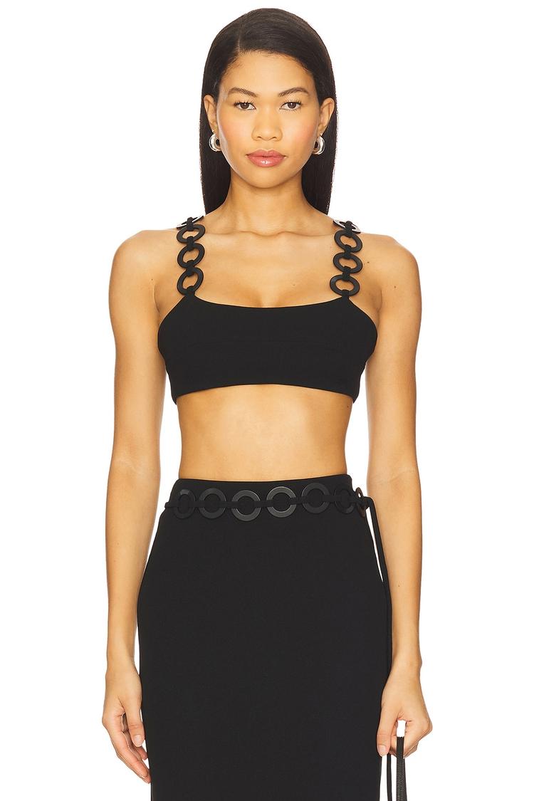 Sleek and modern, this fitted cropped top in black features a striking square neckline and sleeveless silhouette. Lightweight polyester and elastane jersey fabric ensures comfortable wear, while adjustable shoulder straps with tonal ring detailing add a unique touch. The back button loop closure enhances the chic look. Perfect for warm-weather nights out, date nights, or casual gatherings, this top blends sexy and contemporary vibes effortlessly.