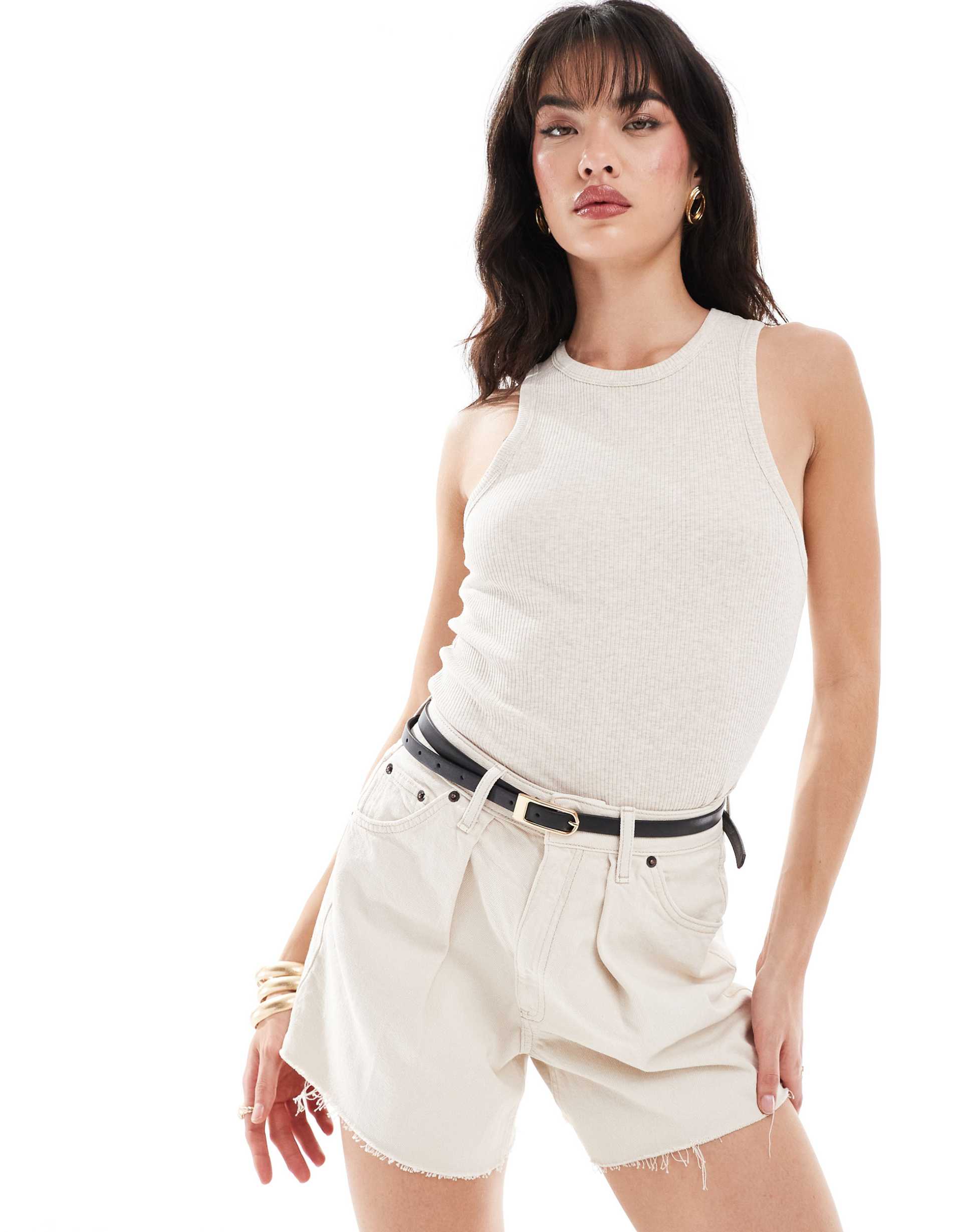 SELECTED FEMME RIBBED TANK TOP IN CREAM