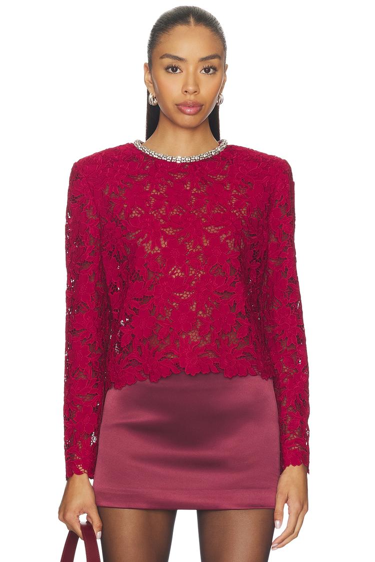 RED LACE CRYSTAL TRIM TOP