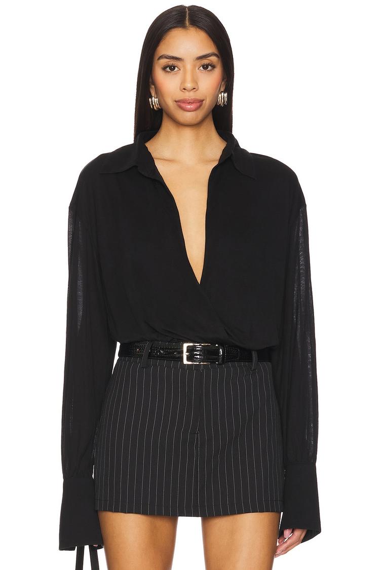 Sleek black lyocell fabric lends a slinky jersey texture to this elegant wrap top, featuring a hip-length silhouette and regular fit. Long sleeves with button cuffs add polished detail, while ruched sides create subtle shaping for a sophisticated finish. The classic collar and deep neckline enhance its chic appeal, making it a versatile piece perfect for casual outings, workwear ensembles, or stylish night outs. Easy to wear with a pull-on design, this top balances comfort and modern elegance effortlessly.