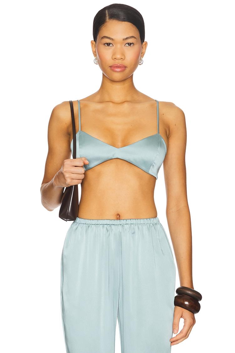 Soft matte light blue satin fabric and a fitted bralette silhouette create an effortlessly chic look. Featuring adjustable spaghetti straps and a back hook closure, this cropped bralette offers comfort and customizable fit. Its unpadded, unwired cups and double-lined midweight satin make it perfect for casual wear, loungewear, beach days, or vacation styling. The minimalist design and V-neckline bring a sleek, sexy vibe to your warm-weather wardrobe.