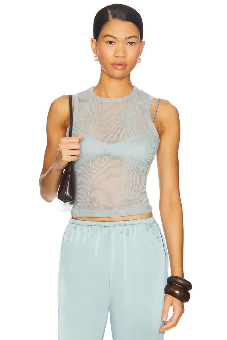 Lightweight and sheer with a minimalist vibe, this slim fit tank top features a classic crew neck and wide straps for comfortable sleeveless wear. Crafted from a blend of viscose, polyester, linen, and lyocell, the ribbed jersey fabric adds subtle texture and breathability. Its waist-length hem and covered back create a clean silhouette perfect for warm weather. Ideal for casual outings, everyday wear, or vacation, this versatile piece pairs effortlessly with relaxed trousers or skirts for a chic, understated look.