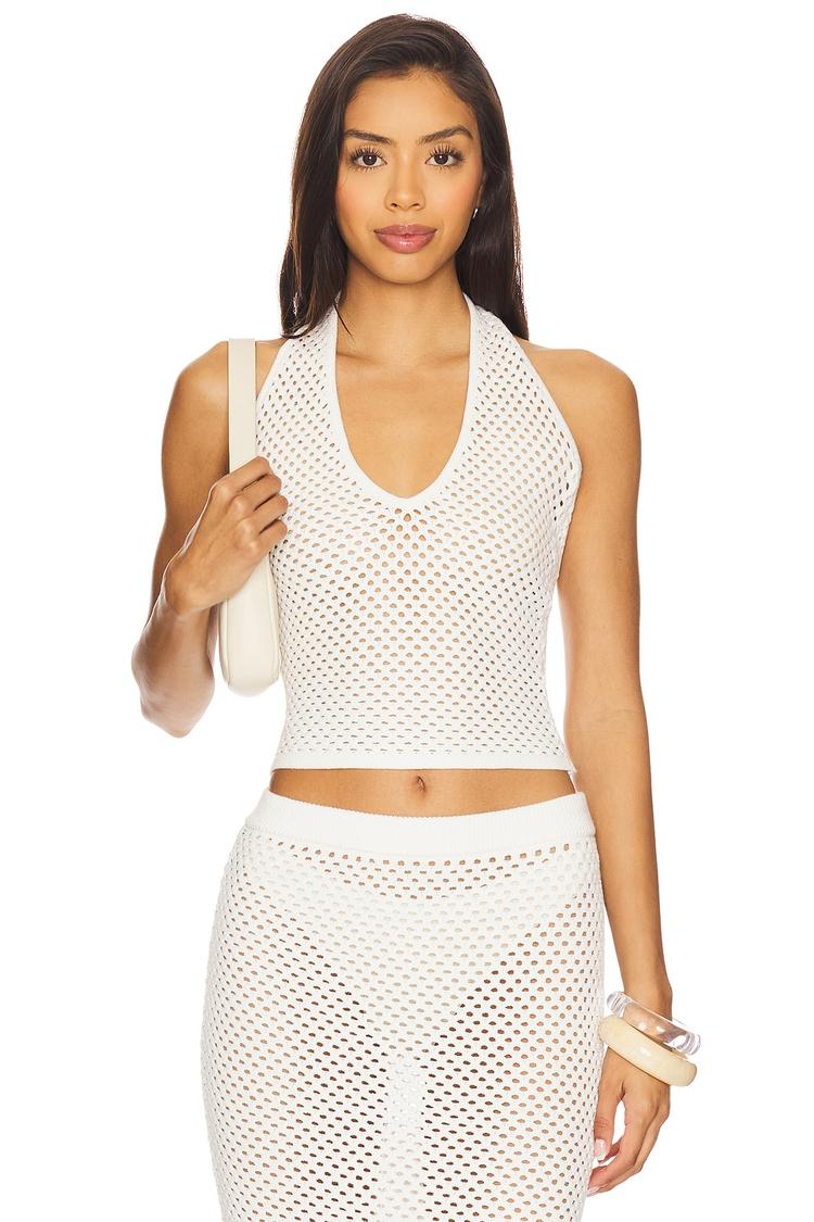 Crisp crochet fabric and a slim cropped fit combine with an open back design and sleeveless U-neck silhouette to create a breezy summer essential. This off-white Zella top crafted from viscose offers a semi-sheer texture that pairs effortlessly with casual, brunch, and beach occasions. The pullover styling enhances its easy-wear appeal, making it a trendy choice for warm weather vacations and laid-back days.