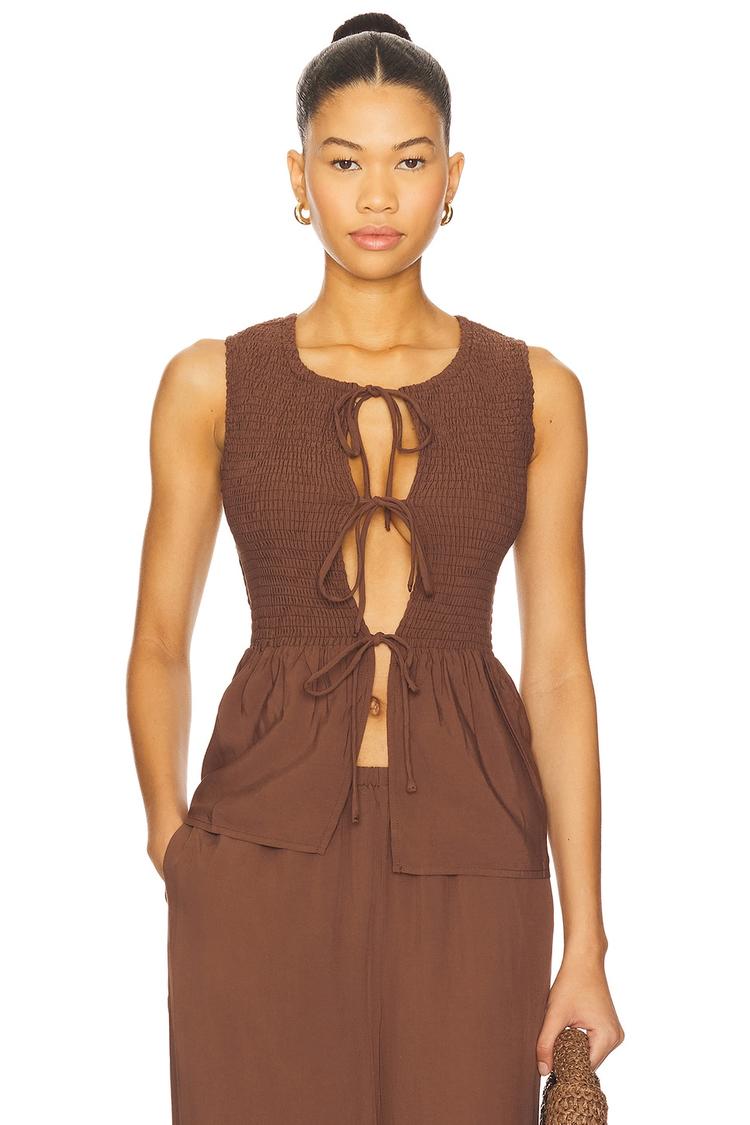 FLEUR SHIRRED TIE FRONT TOP