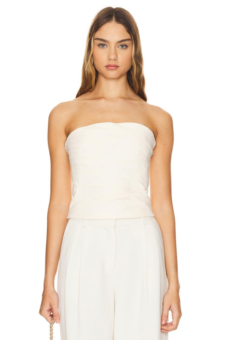 Soft silk fabric and a fitted silhouette define this strapless bodysuit featuring a straight neckline and elegant draped bodice detail. The hidden side zipper closure ensures a smooth fit, while the waist-length hem complements high-waisted bottoms perfectly. Ideal for warm weather seasons like spring and summer, its minimalist chic style suits casual outings, brunch dates, and sophisticated evening occasions. Combining understated elegance with comfort, this piece elevates your wardrobe with refined simplicity and versatility.