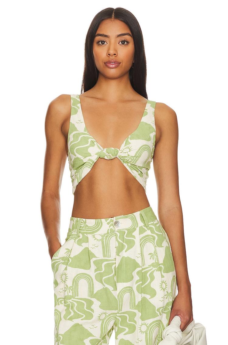 Feel the sunny breeze in the Bonnie Top by Show Me Your Mumu. Crafted from a light cotton-linen blend (Self: 68% cotton, 32% linen; Lining: 100% polyester) for a breathable, airy wear, this cropped cami features a front knot detail that frames a flattering V-neck, with a smocked back panel for easy, pull-on fits. The botanical print sits on an Off-White canvas with fresh green accents, perfect for pairing with high-waisted denim, linen shorts, or a flowing skirt. Ideal for brunch, a seaside escape, or sunset cocktails—effortless, versatile, and endlessly chic.