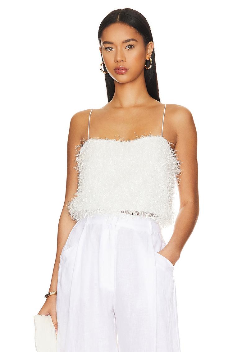 Soft fuzzy knit fabric and delicate bungee spaghetti straps shape this relaxed-fit camisole, designed with a straight neckline and elastic hem for a comfortable waist-length silhouette. Its crisp white hue and lightweight polyester make it a charming choice for spring and summer days. Whether heading to brunch, a casual day out, or a relaxed date night, this cute camisole pairs effortlessly with high-waisted pants or skirts, lending a playful yet chic vibe to your ensemble.