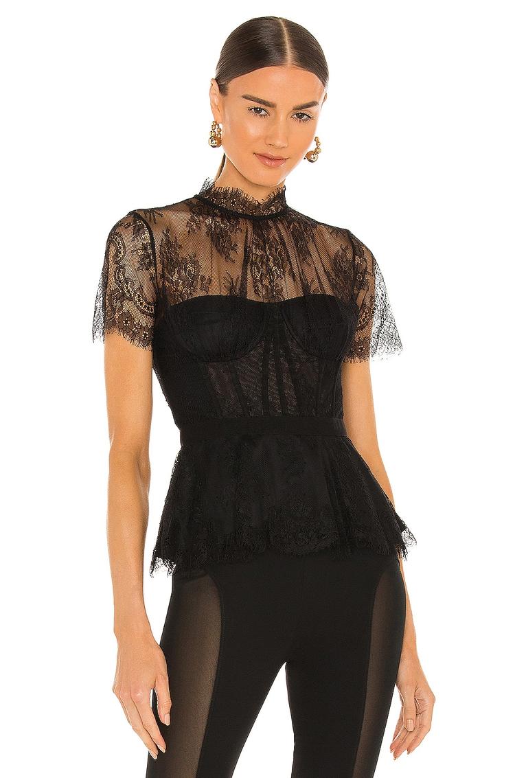 Sheer lace overlays and a fitted boned bodice create a captivating silhouette in this elegant black corset top. Featuring a high neck and half sleeves, this waist-length piece combines delicate lace trim with a concealed back zipper for a sleek finish. Perfect for date nights, casual outings, or night events, the nylon-spandex blend ensures a comfortable yet structured fit. The sheer panels add a sophisticated edge, making this chic top a versatile addition to your evening wardrobe.