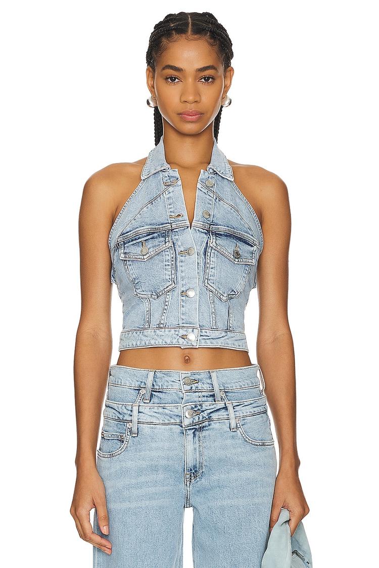 Effortlessly cool and versatile, this cropped denim halter top features a fitted silhouette with a front button closure and an open back design. Crafted from light blue denim with a hint of stretch, it offers a flattering shape perfect for warm-weather casual wear. The sleeveless, strapless styling and halter neckline add a trendy edge, making it an ideal choice for brunch outings, street style looks, or casual date nights. Designed for comfort and style, this top is a standout piece for spring and summer wardrobes.