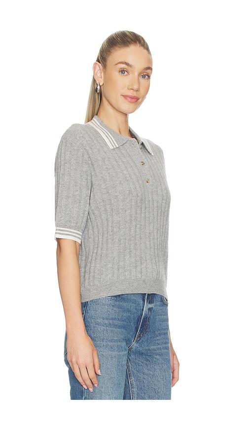 SOFT GOAT STRIPED PIQUE TOP IN GREY.
