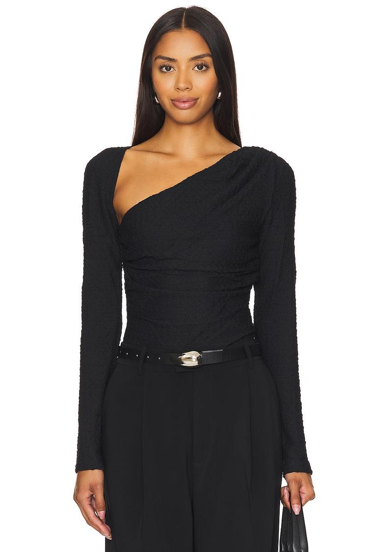 Sophisticated black wrap top crafted from a smooth rayon-nylon blend offers a fitted silhouette that flatters every curve. Its asymmetric neckline and long regular sleeves create an elegant yet modern look, while subtle ruching along the front adds texture and depth. This waist-length top pairs beautifully with tailored trousers or skirts, making it a versatile choice for casual outings, workwear, brunch dates, or evening events. The minimalist style ensures it transitions effortlessly from day to night with a quiet luxury feel.