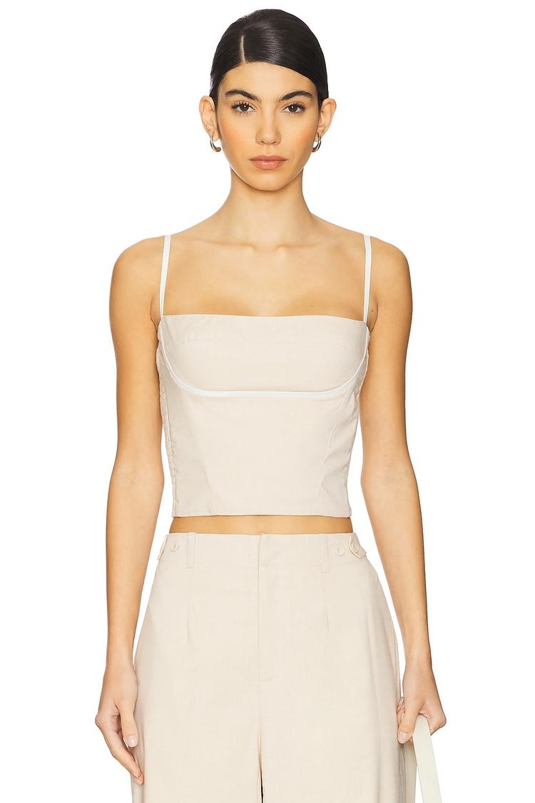 A chic straight neckline and delicate spaghetti straps define this fitted bodysuit in a soft beige hue. Crafted from a luxe blend of polyester, viscose, linen, and elastane, it offers breathable comfort and subtle stretch. Contrast trim and side smocked details add refined texture, while the back zipper closure ensures a sleek fit. Its cropped length and minimalist design make it ideal for casual outings, brunch dates, or stylish day-to-night ensembles. Adjustable straps allow for a tailored fit, enhancing its versatile appeal across warmer seasons.