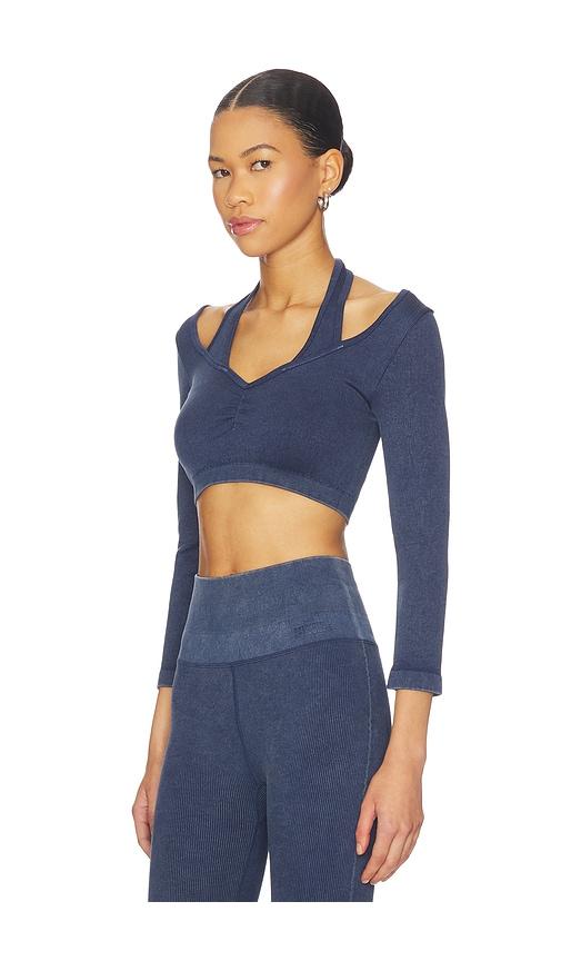 SPIRITUAL GANGSTER SUN BLEACHED GRACE LONG SLEEVE TOP IN BLUE.