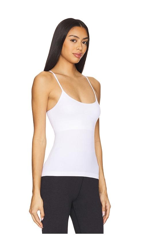 SPLITS59 LOREN SEAMLESS WAIST LENGTH TANK TOP IN WHITE.