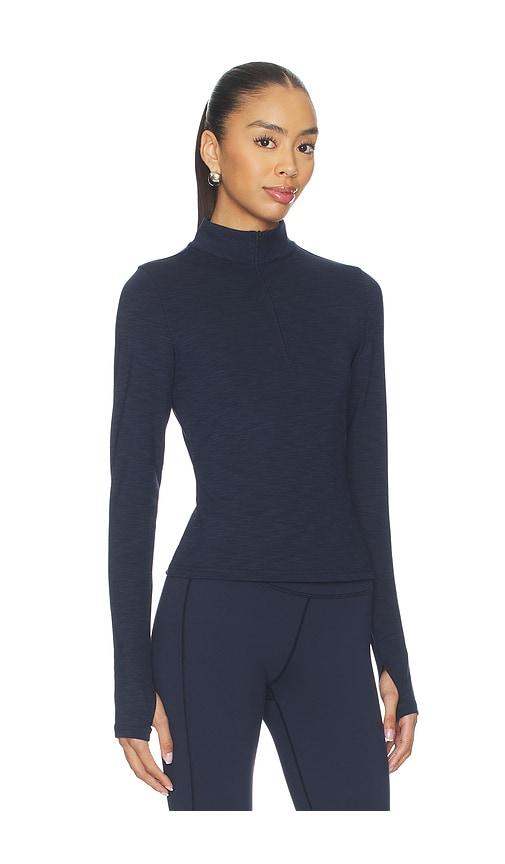 SPLITS59 STEVIE ACTIVE RIB HALF ZIP WAIST LENGTH TOP IN NAVY.