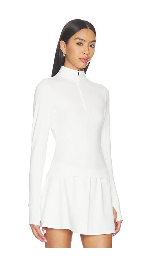 SPLITS59 STEVIE ACTIVE RIB HALF ZIP WAIST LENGTH TOP IN WHITE.