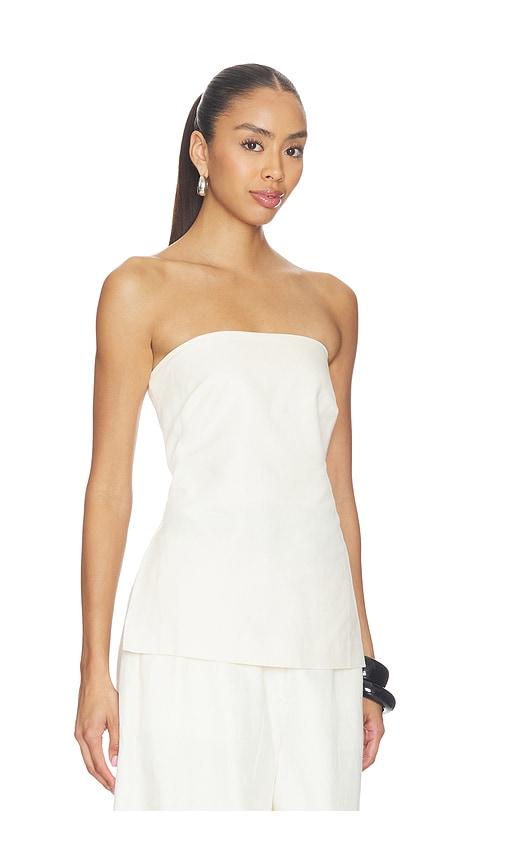 ST. AGNI STRAPLESS ROULEAU TIE TOP IN IVORY.