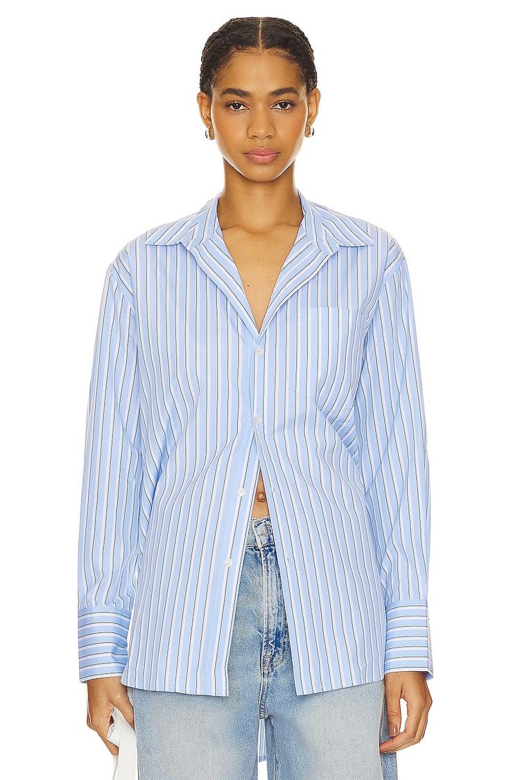 light blue striped blouse