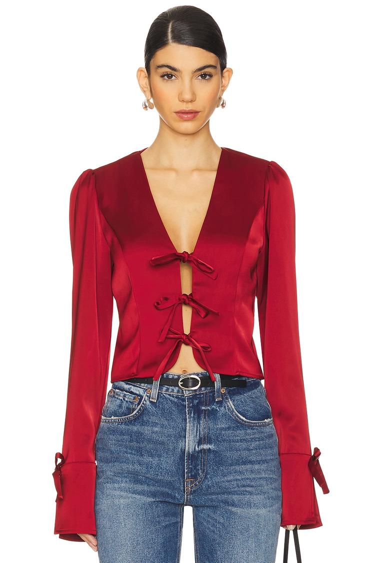 Luxuriate in the smooth feel of lightweight satin with this fitted corset top featuring a flattering V-neck and long sleeves. Its waist-length cut enhances a sleek silhouette, while elegant bow accents grace the front tie closure and cuffs, adding a chic, feminine touch. The covered back and tie-up front closure ensure a comfortable fit. Ideal for casual outings, date nights, brunches, and evening events, this versatile top combines sophistication and sexy appeal effortlessly.