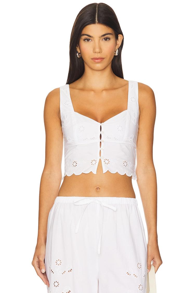 Lightweight cotton fabric paired with delicate eyelet embroidery and a ridged hem give this cropped Vanessa Top a breezy, bohemian vibe. The fitted silhouette and sweetheart neckline with front button closure create a flattering look, while wide straps and sleeveless design keep it cool for warm spring and summer days. Ideal for casual outings, brunch dates, or vacation wear, this versatile top blends classic charm with modern ease for everyday style.