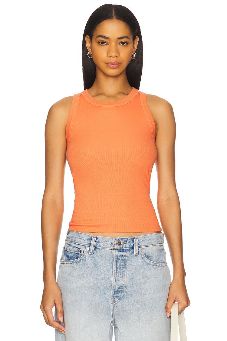 A vibrant matte bright orange tank top crafted from a midweight ribbed jersey blend of cotton, modal, and spandex offers a fitted silhouette with wide straps and a classic crew neckline. Its waist-length cut and sleeveless design make it an ideal layering piece or stand-alone top for casual outings, everyday wear, and travel. The minimalist style and pullover closure ensure easy wearability and timeless appeal during spring, summer, or any season requiring breathable comfort and effortless chic.
