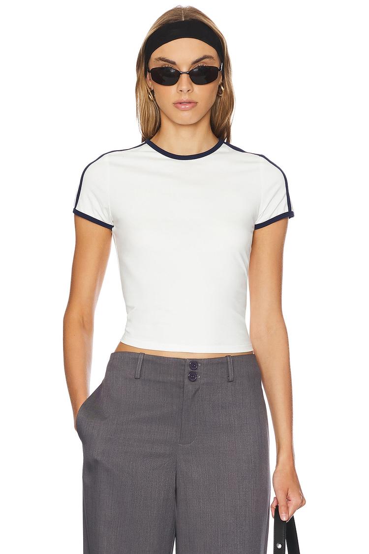 Feel effortlessly chic in the Allie Top—a crisp white, color-blocked tee with navy piping along the crew neck and sleeve cuffs. Crafted in a soft, breathable 95% cotton, 5% spandex jersey, it moves with you in a fitted, cropped silhouette. The neckline sits neatly in a classic crew shape, with regular sleeves and a covered back for clean lines. Dress it up with tailored pants or keep it casual with high-rise jeans; it’s perfect for work from home, brunch, or a day out. Easy to care for with a gentle hand wash, this timeless top elevates any wardrobe.