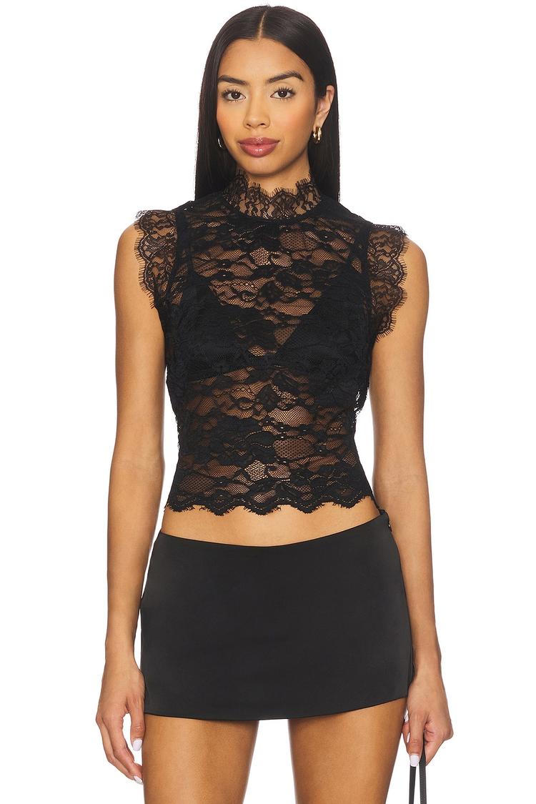Delicate lace with raw trim detailing defines this fitted, cropped camisole featuring a high neckline and sleeveless design. Crafted from a sleek nylon-elastane blend, it offers a modern and sexy silhouette perfect for spring and summer nights. Ideal for date nights, girls’ night outs, or any evening event, this chic top elevates any look with its sheer lace texture and elegant black hue. The pullover style ensures easy wear while maintaining a sophisticated edge.