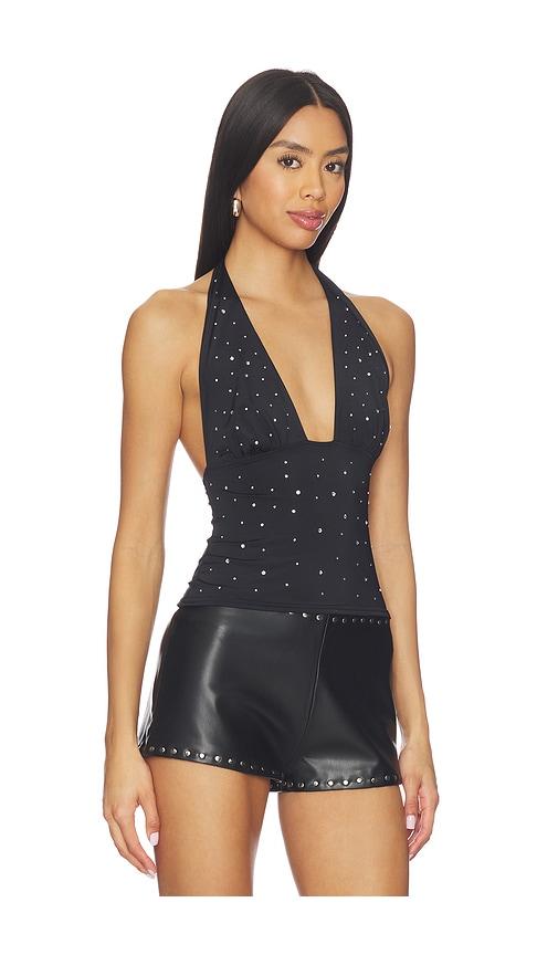 SUPERDOWN SHEREN STUDDED TOP IN BLACK.