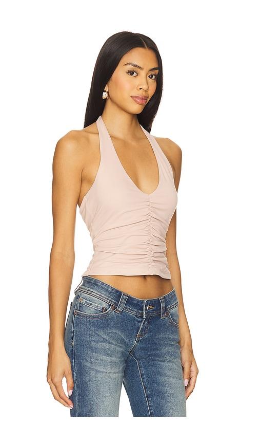 SUSANA MONACO CENTER GATHERED TIE HALTER TOP IN PINK.