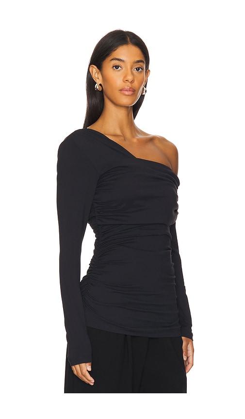 SUSANA MONACO ONE SHOULDER OFF SHOULDER LONG SLEEVE TOP IN BLACK.
