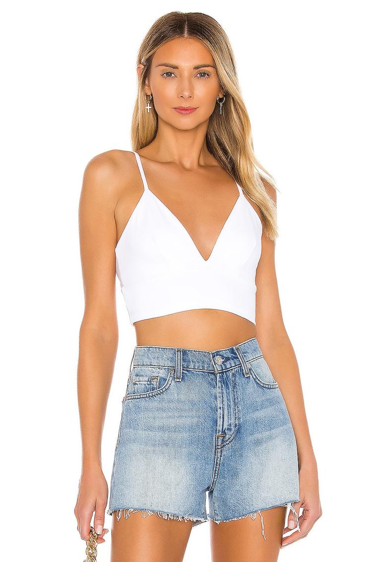 Soft and sleek, this fitted cropped top features a flattering V-neck and delicate spaghetti straps that highlight the shoulders. Made from a stretchy nylon and elastane blend, it offers comfort and a minimalist silhouette perfect for warm weather. Its pure white hue pairs effortlessly with casual denim or layered pieces. Ideal for casual outings, brunch dates, or vacation days, this crop top blends simplicity with a modern, chic vibe that complements any summer wardrobe.