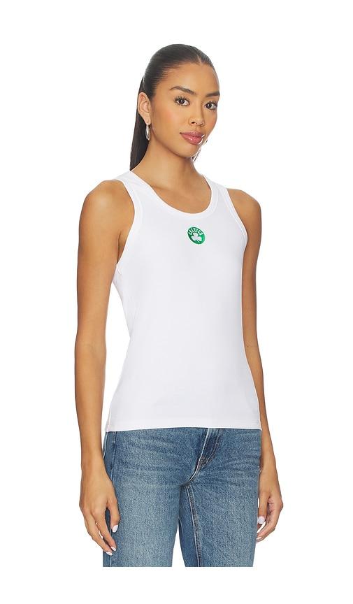 TEREZ X REVOLVE CELTICS SCOOP NECK RIB TANK TOP IN WHITE.