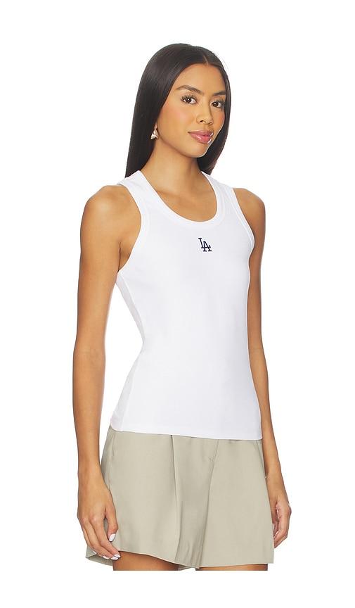 TEREZ X REVOLVE DODGERS SCOOP NECK RIB TANK TOP IN WHITE.