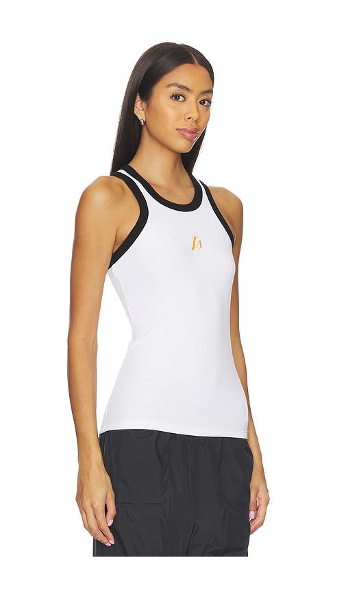 TEREZ X REVOLVE LAKERS SCOOP ARMHOLE RIB TANK TOP IN WHITE.