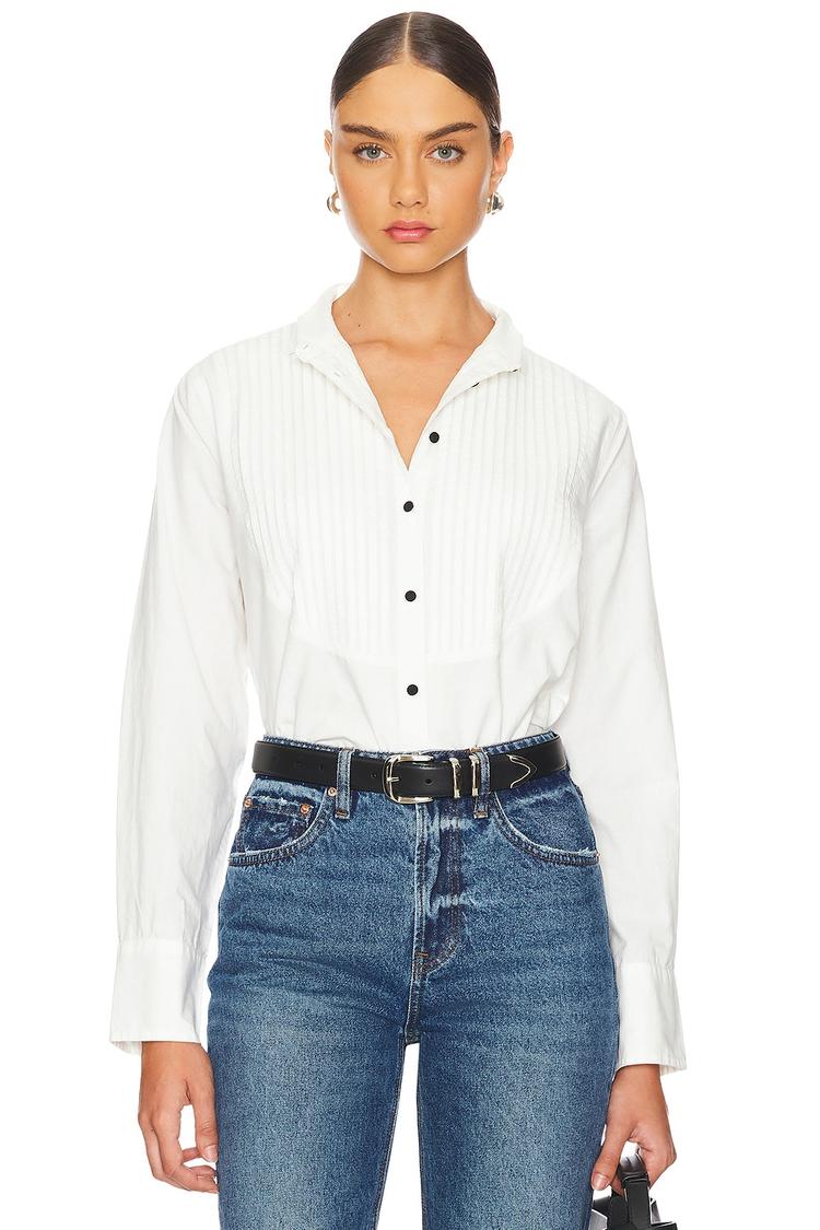 Crisp 100% cotton fabric with subtle gray stripes and pleated detailing at the front creates a refined silhouette in this classic shell top. Featuring a band collar, front button closure, and buttoned long sleeves, its regular fit and hip-length hem make it a versatile choice for workwear, business casual, and brunch occasions. The covered back and minimalist style add to its elegant and timeless appeal, making it an essential piece for a polished, professional wardrobe.