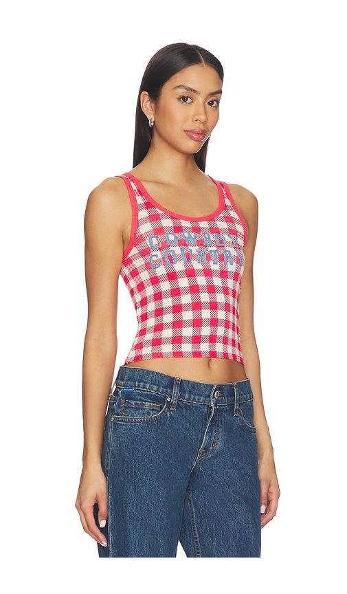 THE LAUNDRY ROOM COWBOY COUNTRY DENIM RIB TANK TOP IN RED.
