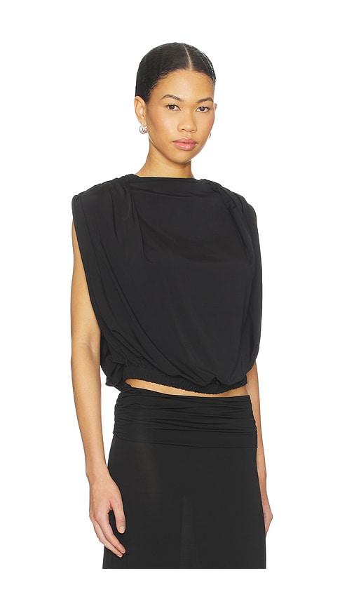 THE LINE BY K BOBI DRAPED SHELL TOP IN BLACK.
