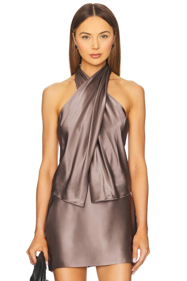 Luxurious matte brown silk wraps gracefully in a halter neck style, creating a slim, cropped silhouette that is both elegant and sophisticated. The sleeveless, strapless design and covered back with a subtle button closure add refined simplicity, making it perfect for cocktail parties, date nights, and upscale evening events. Lightweight satin fabric enhances the drape and comfort, offering a chic and polished look that transitions beautifully through spring and summer seasons.