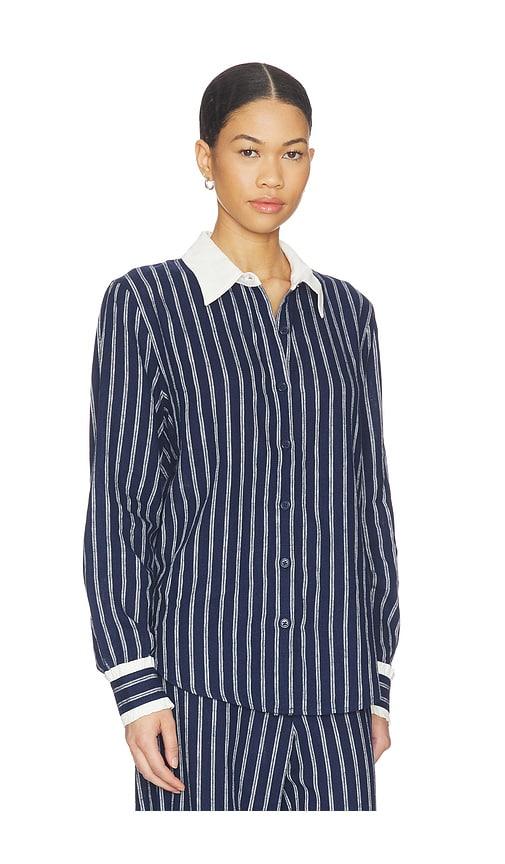 THE UPSIDE BELIZE BOBBI COLLARED TOP IN NAVY.