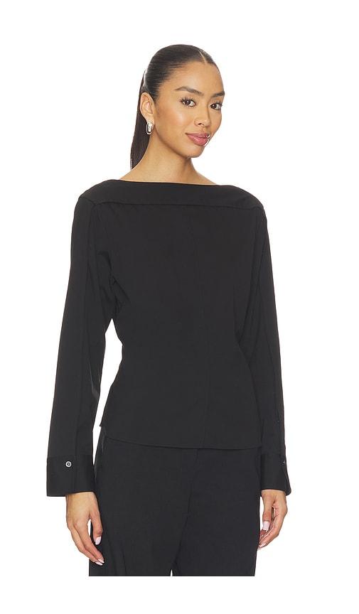 THEORY OPEN SLEEVE BOATNECK TOP IN BLACK.