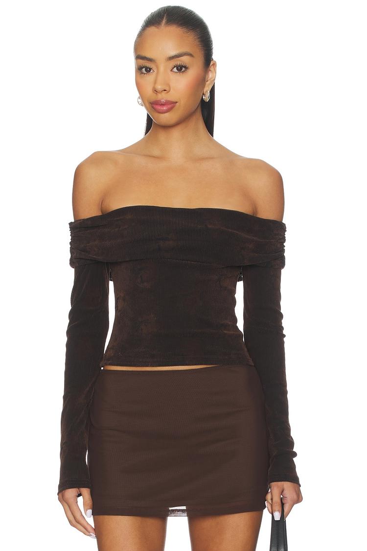 Softly textured in lightweight velour fabric, this fitted blouson top features a chic off-shoulder neckline and long sleeves for a sleek silhouette. Its waist-length cut and matte black hue bring an elegant, modern vibe, perfect for casual outings, date nights, or evening events. The pullover design enhances ease of wear while maintaining a sexy, trendy style that's ideal for autumn and winter wardrobes.