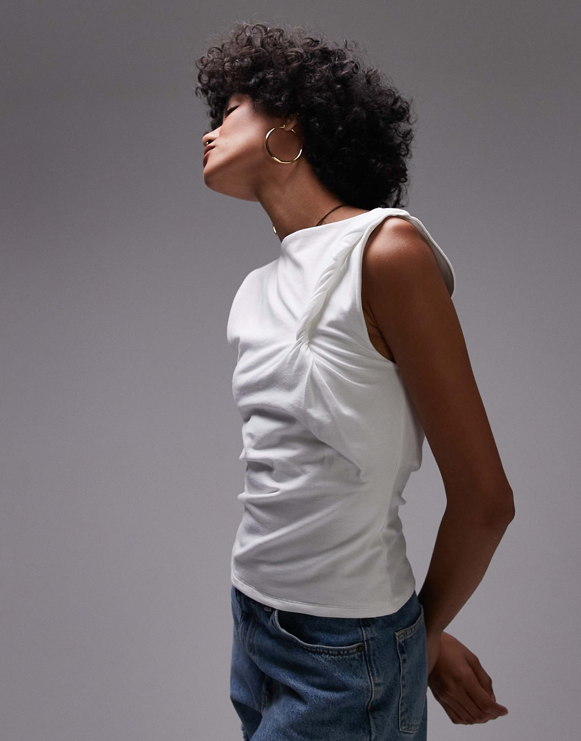 TOPSHOP KNOT SHOULDER TANK IN IVORY