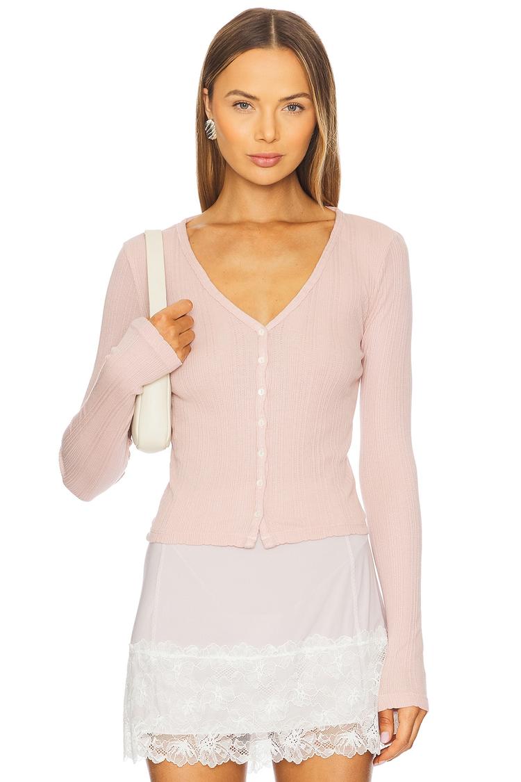 fitted pink cardigan