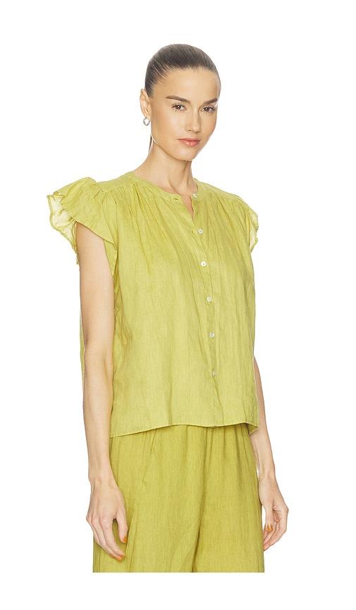 VELVET BY GRAHAM & SPENCER JANEY WOVEN LINEN TOP IN YELLOW.