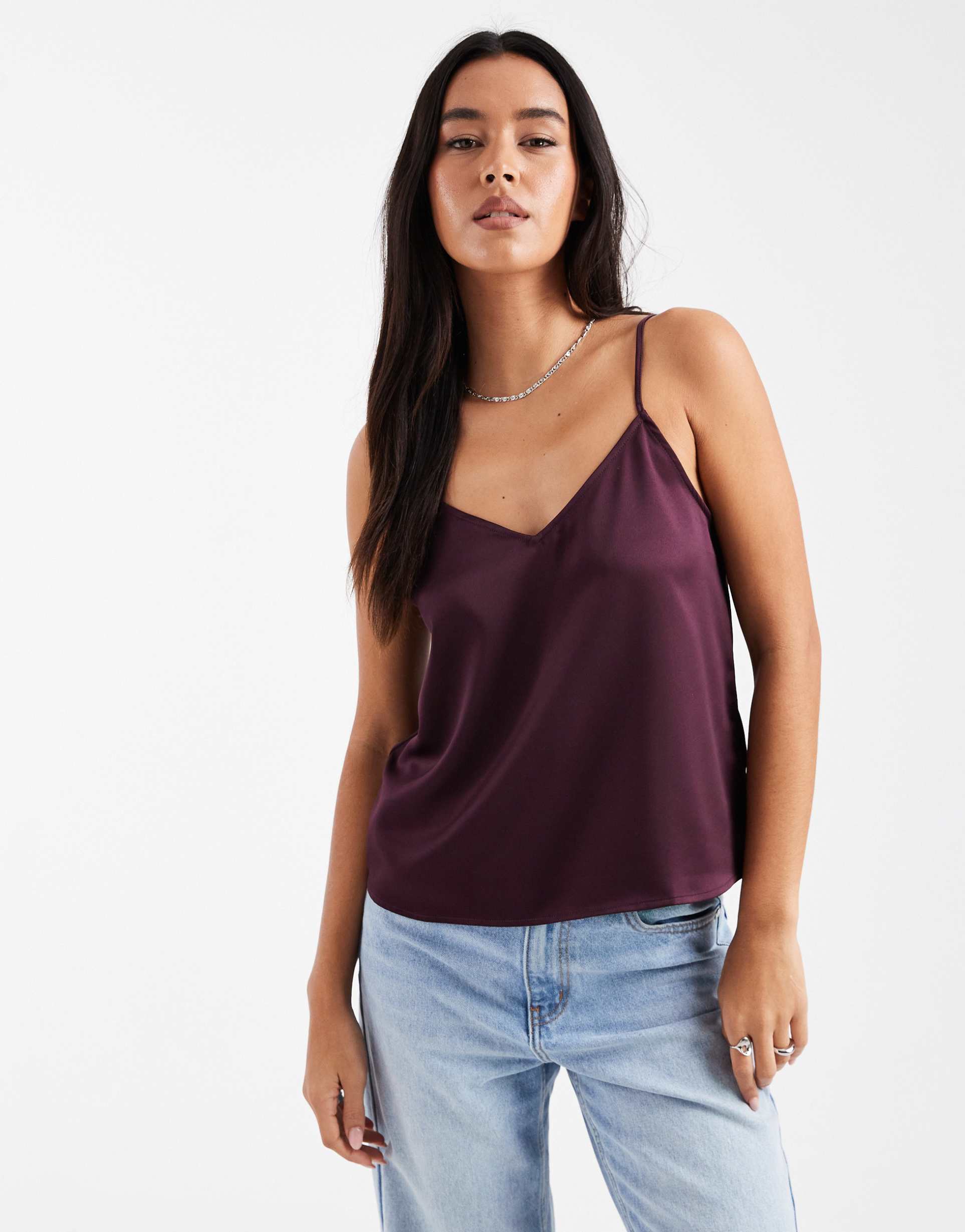 VERO MODA SATIN V-NECK CAMI TOP IN WINE