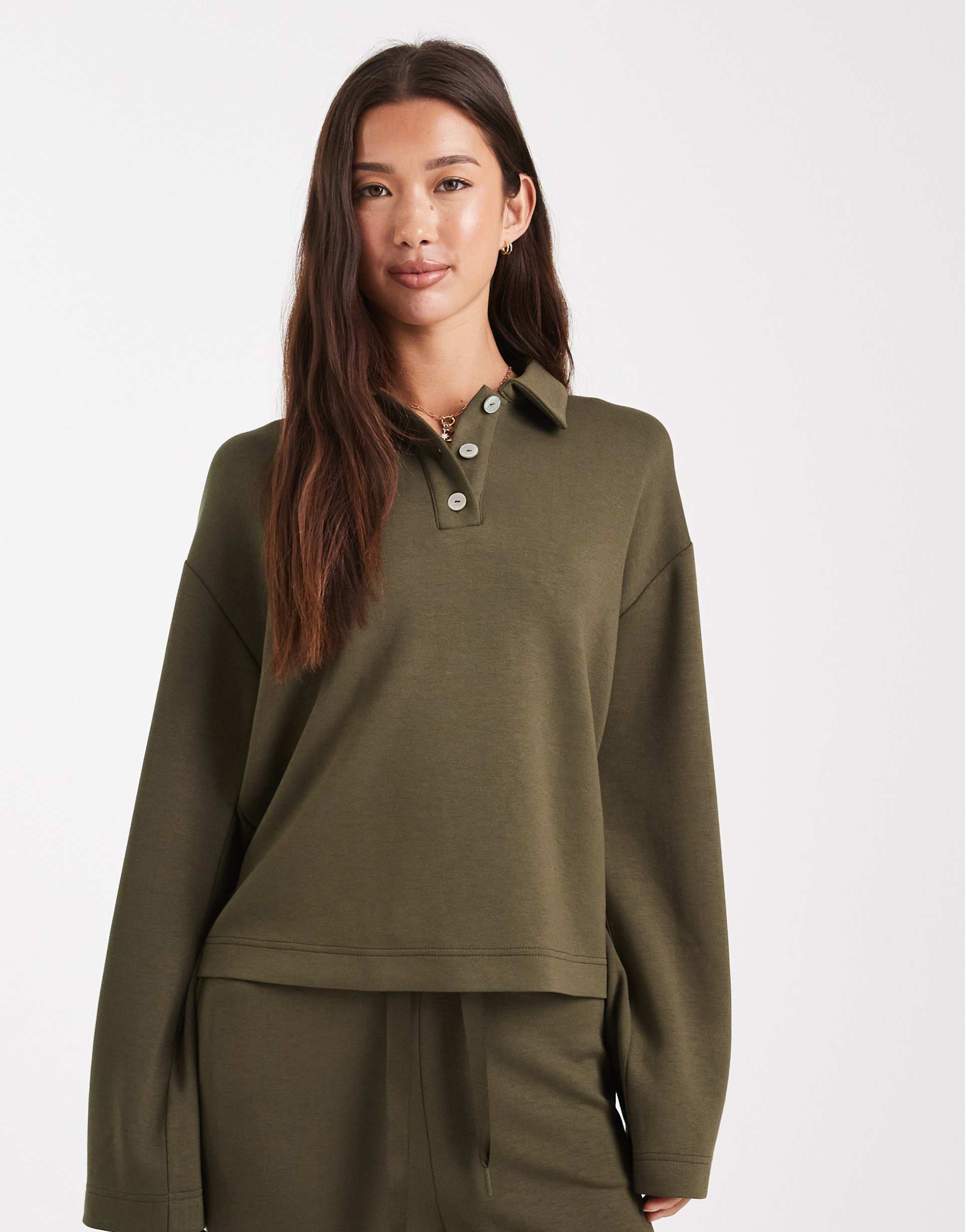 VERO MODA SUPER SOFT POLO SWEAT TOP IN OLIVE GREEN - PART OF A SET